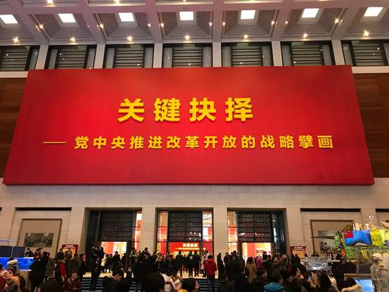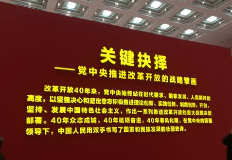 第三展区位于一楼中厅,其主题内容是:关键抉择——党中央推进改革开放的战略擘画。