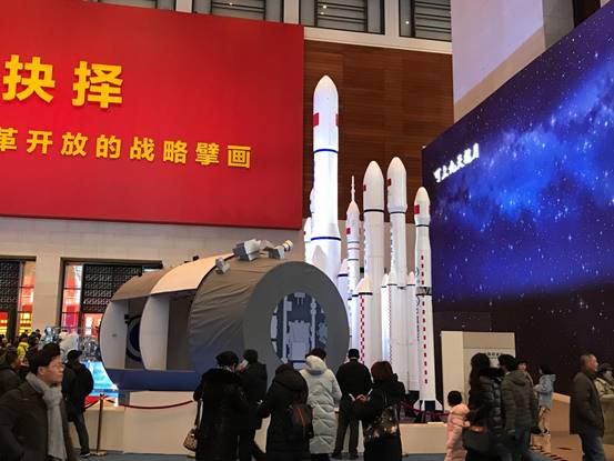 第二展区的主题是壮美篇章,通过实物模型、景观制作和场景还原等方式,再现改革开放的大事和要事。在这个展区可以看到曾上九天揽月的长征号火箭模型和可下五洋捉鳖的蛟龙号潜艇模型。