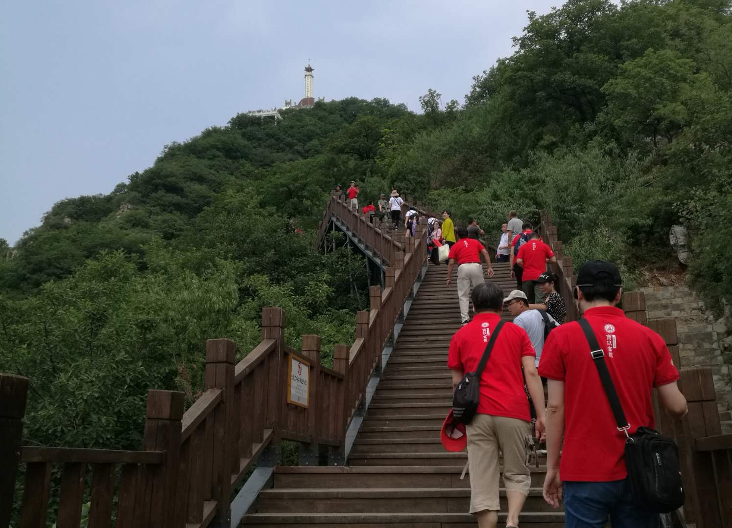 到达狼牙山下,教师党员同志们沿着先烈足迹,发扬不怕苦不怕累的革命精神,拾阶而上重走英雄路,向着狼牙山五勇士纪念塔前进。