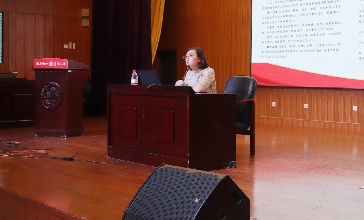 (苏比伊努尔、巴晟昆、陈政瑄)习近平总书记指出:“把青年一代培养造就成德智体美劳全面发展的社会主义建设者和接班人,是事关党和国家前途命运的重大战略任务,是全党的共同政治责任。”青年学生作为国家的未来,青年的道德水准和精神风貌很大程度上反映民族的文明素养,大学生处在价值观形成和确立的时期,mg4355vip线路主页检测一直重视学生素质培养,坚持把纪律意识融入学生日常生活,从小事抓起。为此,mg4355vip线路主页检测开展一系列开学主题教育讲座,加强2023级新生对党和国家的各项法律法规的了解,以及对mg4355vip线路主页检测学则的把握。