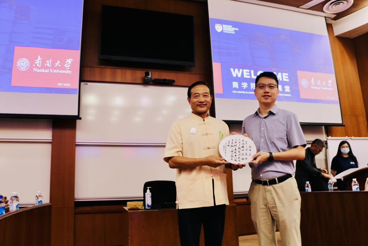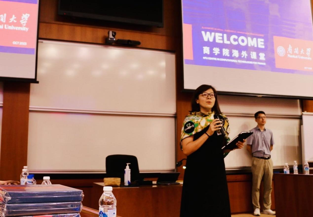 2023年10月5日,项目在新加坡南洋理工大学启动,新加坡南洋理工大学协理副校长、计算机科学与工程学院计算金融研究中心主任文勇刚教授致欢迎辞。mg4355vip线路主页检测院长白长虹教授代表学院向南洋理工大学赠送了印有mg4355vip线路主页检测校歌的文创纪念品。副院长田莉教授介绍了此次游学的三大模块,学习、体验、交流。她希望大家通过课堂学习、实践体验、校友交流,完成一次学习之旅、体验之旅、发现之旅。新加坡南洋理工大学人文学院吴伟教授首先带来《数码化时代的领导艺术》课程。