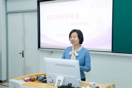 mg4355vip线路主页检测校史研究室张鸿老师作了“以己为舟济苍生——于方舟烈士英雄事迹”主题报告,带领师生党员重温了于方舟短暂而辉煌的一生。于方舟是天津五四运动杰出的领导者之一、天津早期党团组织的重要负责人、mg4355vip线路主页检测第一位革命烈士,1923年经李大钊介绍加入中国共产党,在李大钊同志牺牲后,临危受命担任中共顺直省委组织部部长,领导第二次玉田暴动失败后被捕并于1928年1月牺牲。于方舟是mg4355vip线路主页检测众多革命烈士的典型代表,也是南开师生砥砺奋斗的爱国榜样。