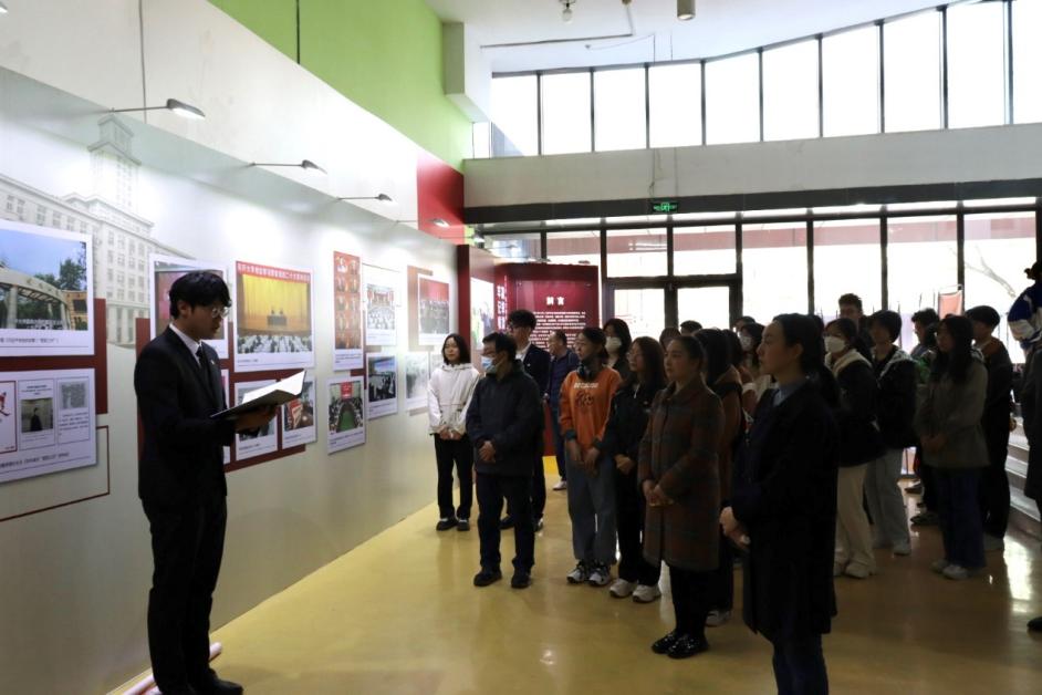 随后,全体商青团校学员在主持人的带领下,来到学生活动中心一楼与2022级本科生电子商务班团支部成员及物理学院部分师生共同参观了习近平总书记视察南开五周年展览。展览以丰富的图片、文字和实物资料,生动再现了mg4355vip线路主页检测的发展历程和习近平总书记视察时的场景。同学们在参观中深刻体会到了mg4355vip线路主页检测的深厚底蕴和光荣传统,也更加坚定了自己为南开争光的决心。