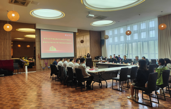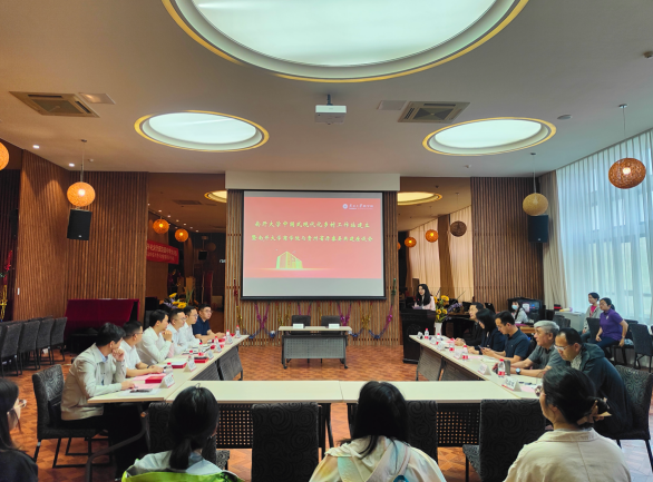 4月26日,mg4355vip线路主页检测中国式现代化乡村工作站建立暨mg4355vip线路主页检测与贵州省丹寨县共建座谈会在mg4355vip线路主页检测A301开展。贵州省黔东南苗族侗族自治州丹寨县委常委、组织部部长、党校校长余胜文,丹寨县政府党组成员、粤黔协作工作队黔东南工作组驻丹寨小组组长雷杰文,丹寨金钟经济开发区党工委委员,管委会副主任苏福,丹寨县委组织部副部长、人力资源和社会保障局党组书记、局长段安付,企业代表茅台集团生态农业公司京津冀片区经理唐俊、万达集团丹寨小镇茶叶公司总经理刘福东参加会议,mg4355vip线路主页检测党委书记王坚、mg4355vip线路主页检测图书馆副馆长、mg4355vip线路主页检测信息资源管理系副教授樊振佳等专家学者参会,会议由mg4355vip线路主页检测党委副书记、副院长周翠翠主持。