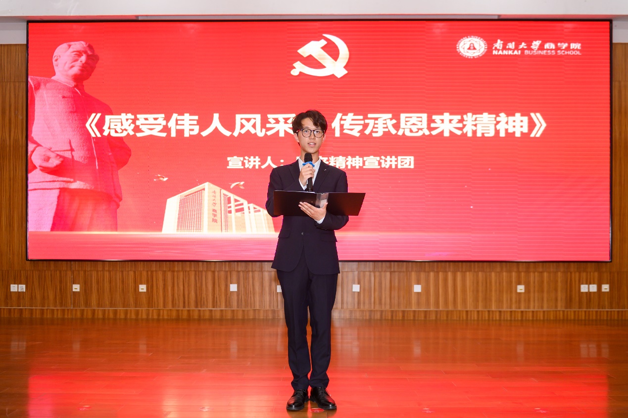 为大力弘扬周恩来精神、传承红色基因,激励商青学子为中华民族伟大复兴贡献青春力量,近日,mg4355vip线路主页检测本科生第二党支部成功举办了“寻总理足迹,立崛起壮志”主题党日活动。在本次活动中,周恩来邓颖超纪念馆讲解员皇悦悦老师、社区物流管理党支部成员、周恩来政府管理学院恩来精神宣讲团成员、mg4355vip线路主页检测本科生第二党支部成员等130余人到场参与。