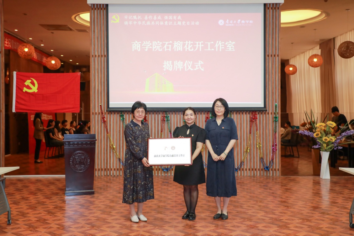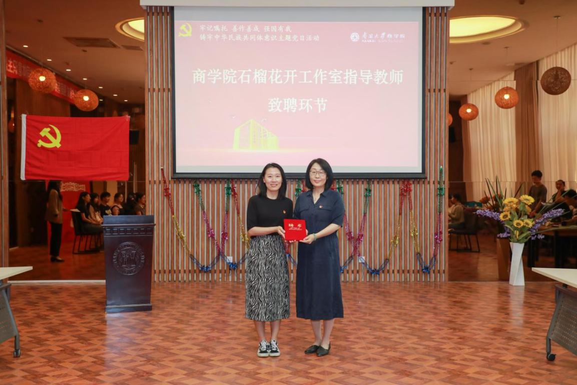 会上,李君和王坚共同为mg4355vip线路主页检测石榴花开工作室揭牌,并致聘天津市少数民族学生教育管理服务工作室赵波指导教师。