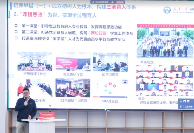 第一组在 A501 - 2室,展示了包括工商管理专业核心课程“战略管理”、“企业伦理”等7门课程建设情况;第二组在A501 - 3室,对市场营销专业核心课程“数智营销”、“营销建模”等6门课程进行研讨;第三组在 422室,围绕图书馆学专业核心课程“信息资源管理概论”、“图书馆信息学概论”等7门课程展开交流;第四组在522室,对会计学系“会计高阶科研训练营”、财务管理系“中国保险机构治理指数研究”等9个项目进行分享与评审。
