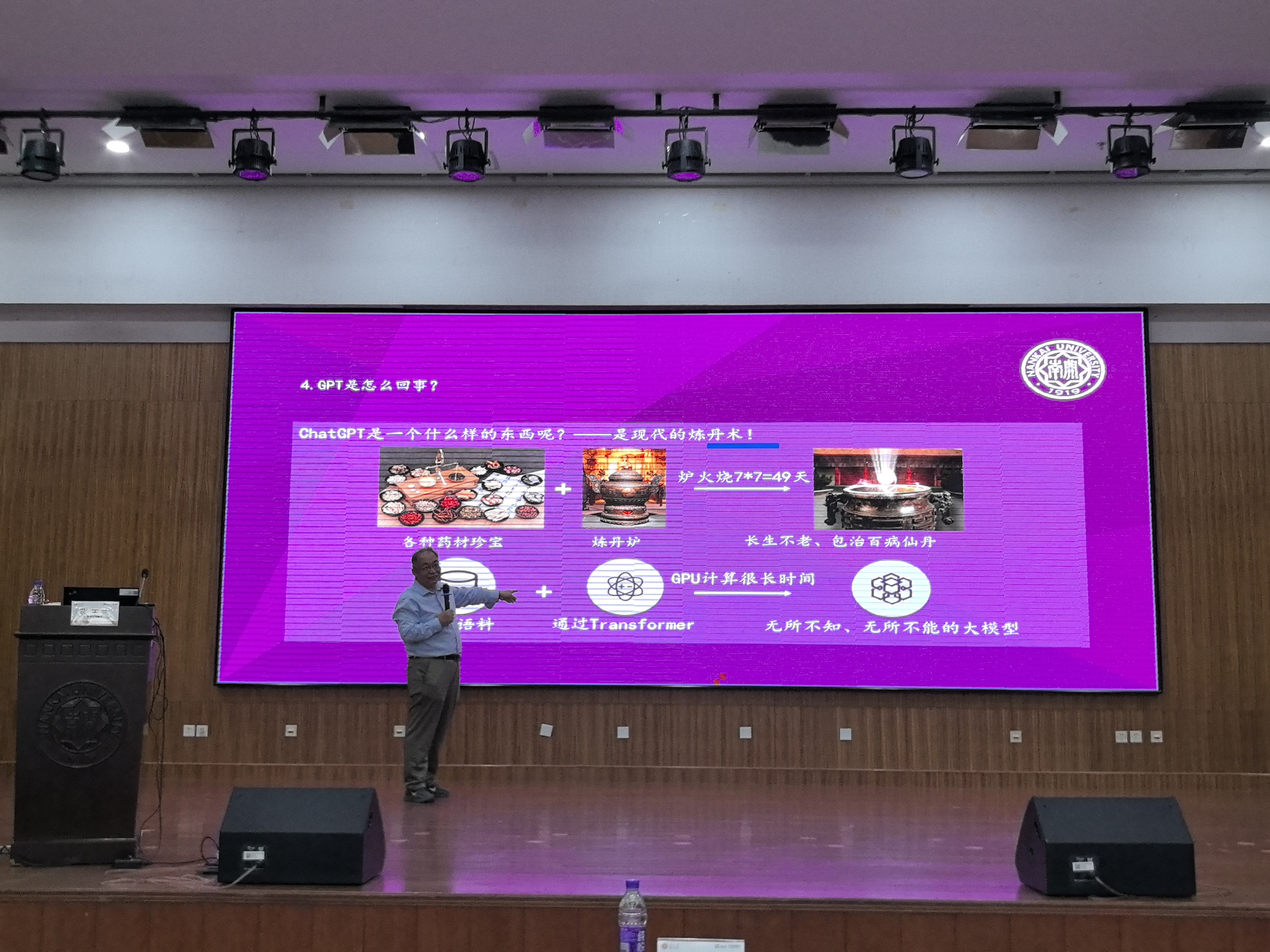 人工智能作为当下最为热门的话题之一,成为本次课程的重点讨论内容。张玉志教授凭借深厚的学术造诣和敏锐的行业洞察力,深入介绍了AI的底层逻辑和当前的发展态势。他强调,国家对战略性新兴产业的发展给予了高度重视,随着科技发展呈指数级加速,知识更新换代的速度越来越快,知识半衰期不断缩短。通用人工智能和大模型的快速崛起,在为各行业带来前所未有的发展机遇的同时,也必然会引发就业结构的重大调整。面对这一形势,张玉志教授鼓励在场的商科学生增强忧患意识,时刻保持学习的热情和积极性,紧跟技术更迭的步伐,在生成式人工智能广泛应用的时代浪潮中努力提升自己,成长为既精通科技知识又具备卓越管理能力的复合型人才,更好地适应未来社会的发展需求。