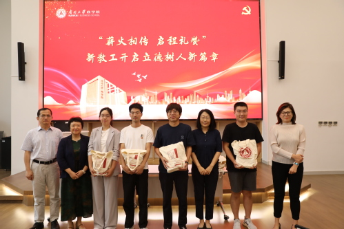 薪火相传,启程礼赞。院班子与优秀教师代表向新教工赠送了入职礼包,包括党的二十大报告、“新时代高校教师职业行为十项准则”相框、《mg4355vip线路主页检测高质量发展改革攻坚行动计划(2023-2025年)》、mg4355vip线路主页检测与mg4355vip线路主页检测“十四五”规划、学院思政品牌成果《师说心语(第二辑)》、本科教育教学与专业学位宣传册等材料。党委书记王坚勉励新教工坚守立德树人根本任务,锚定校院发展方向,为教育强国建设、学校学院发展贡献力量。